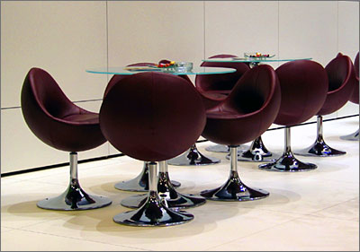 Die burgunderoten Lederstühle auf Chrom sind bequem und stylisch - und auch auf der exponet anzutreffen!