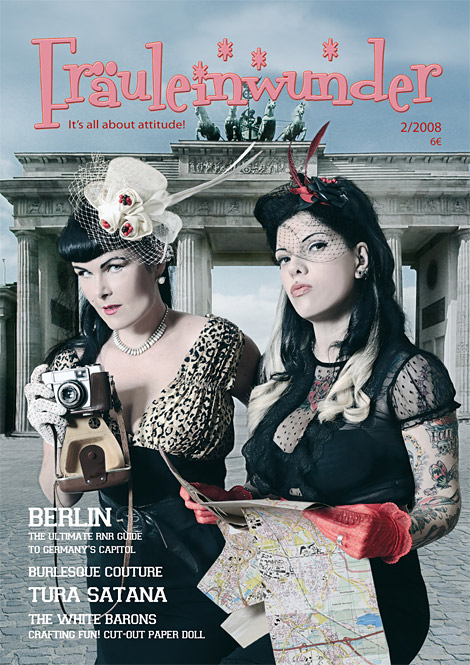 *Micky chats with The White Barons - punkrock heroes from San Francisco, Pinky Paradise and Sweetness show you how to do your hair in perfect pinup style, Tura Satana, sweet& deadly art by Candy Cane, dress up like a show girl with Burlesque Couture, another episode of Between the Sheets with Eva von Slut, Miss Winks Cinematique whisks you away into the world of teenage delinquent movies, some crafting fun with Soda Shop Sue, stylish Must Haves and lots more a bombshell needs to to know...*