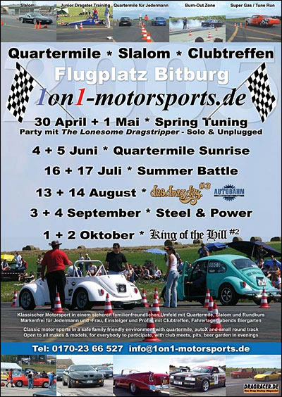 Wir bieten Aktiven aus dem Drag Racing Sport die notwendigen Trainings-, Test- und Tune-Runs soweit möglich (nicht lauter als 98dB @ 3800 rpm).