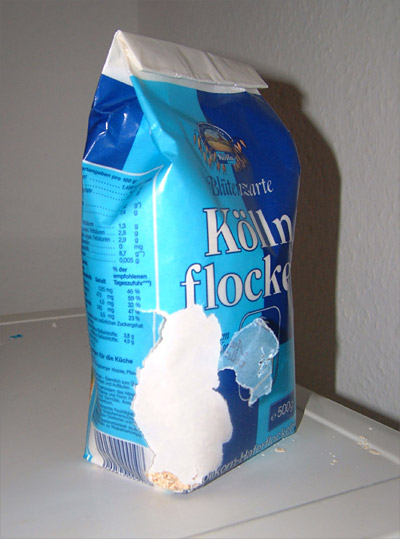 Da hat die Sau von Maus gestern den Weg ausgekundschaftet und sich in der Nacht über die guten Haferflocken hergemacht! ;-) Die Mausefalle ist jetzt geladen und wir sind gespannt, wann sie den Käse aus dem Teil stibitzen will - und dann pengpafff, ist die Tür zu! Feierabend! Aus die Maus! ;-)