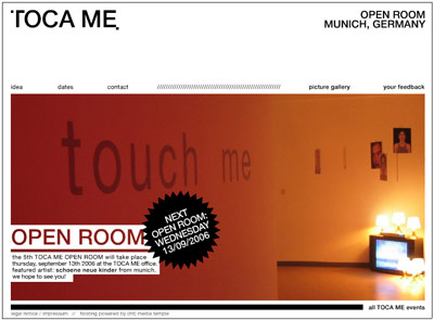 TOCA ME OPEN ROOM is a place to come together - not only for designers. a place for exchange - what will happen depends on you. if you want to show some of your work at upcoming happenings just contact us. we are open for your ideas.