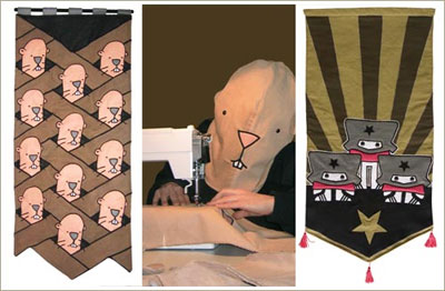 Zum zweiten Mal nach 2005 kommt die Hamburger Künstlerin in den heliumcowboy artspace, und auch diesmal steht ein ikonisch-ironischer Kommentar im Zentrum der Ausstellung: großformatige, applizierte Wappen-Flaggen von Spielzeugarmeen - ein in die Moderne übertragenes Zitat klassischer Zugehörigkeitsembleme, umgesetzt mit traditionellen Handwerkstechniken, mit denen Nina Braun bevorzugt ihre Kunstwerke schafft.