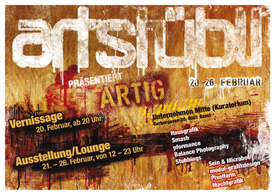 Neben der Produktion des PDF-Art-Magazins N.2, welches vom Grafikatelier „Hochzwei“ in Basel gestaltet wurde, organisiert artstübli nun auch die erste Grafik-Art-Ausstellung „ARTig“ im Herzen von Basel! Bekannte Künstler aus der ganzen Deutschschweiz zeigen einen „ARTigen“ Mix, kombiniert aus Street Art, Graffiti, Photografie, Grafik-Design und Film/Animation. Eine gemütliche Lounge sorgt dafür, mehr über die artstübli Kultur, das Art-Magazin und deren weiteren Projekte zu erfahren. Zudem bietet ein Shop einzigARTige, limitierte und mit Liebe gefertigte ARTikel an.