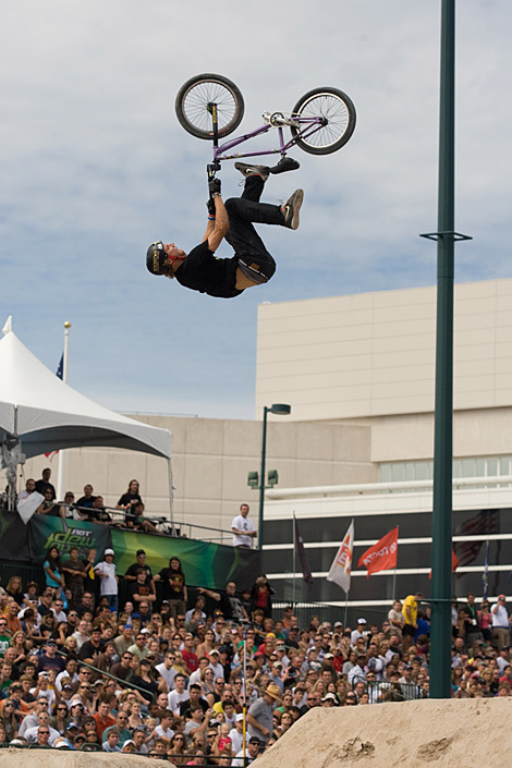 Über sechzig Pro-Fahrer rockten bei der Qualifikation die gigantischen Jumps des Dirt Parcours dermaßen überzeugend, dass diesmal mit 18 Fahrern bei den Finals gestartet wurde. Die Verlagerung der Dirtline unter die Zoobrücke brachte dieses Jahr Fahrern und Zuschauern noch mehr Aktion und blendende Einblicke in die wahnsinnigen Abflüge. Sieger Ryan Guettler (AUS) erwischte einen wirklich guten Tag: 1080, Frontflip on the Step up und one hand one foot 720 sind allesamt Tricks der Kategorie Extraklasse! Der zweit platzierte Corey Bohan punktete mit unglaublichen Turn Down Flips und den dritten Platz belegte Dirt-Virtuose TJ Ellis (USA). Die TV-Interviews mit den Fahrern führte kein geringerer als BMX-Legende Mat Hoffman (USA)!