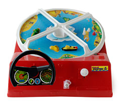 Schachtel: 43x35x11 cm; Spiel 40x32x10 cm; wahlweise young Driver (Rallyefahrer, Auswahl: rot) oder yong Seaman (Auswahl: blau); batteriebetrieben fährt das Auto/Schiff seinen Parcours...;