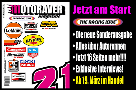 Es ist soweit. Das neue Motoraver Magazin liegt im Handschuhfach - die Sonderausgabe zum Thema Autorennen! Grand Prix, Daytona, Cannonball, Le Mans und mehr. Extra 16 Seiten mehr. Jetzt im Motoraver Online Shop und ab Montag, den 19. März beim Kiosk Eures Vertrauens.