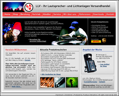 LLV ist seit über 20 Jahren ihr zuverlässiger Spezialversand in Sachen Lights, Sounds & Effects. Wir führen das komplette Programm für Musiker, Discjockeys, Clubs, Events, Messen, Promotion! Hohe Qualität, kurze Reaktionszeiten und hervorragende Liefertreue sind unsere Stärken.