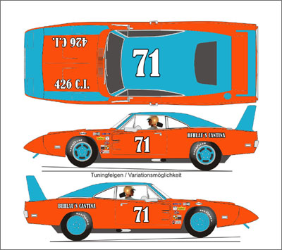 Carrera schreibt jedes Jahr einen Wettbewerb für ein 1:24 Evolution Clubmodell aus. Man konnte eine einfache JPEG Vorlage runterladen und sein Wunschauto (2004 wird es ein US-Car: Dodge Daytona Charger) gestalten. Einsendeschluss war der 1. Januar 2004 - jetzt wählt eine Jury bei Carrera die besten Entwürfe aus und kürt dann den Sieger. Das Siegerauto wird dann gefertigt und in einer limitierten Edition offiziell verkauft.