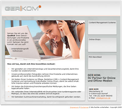 Neue Website für eine Mediaagentur in der Mache - genauer: Ich mache das Screendesign für GER|KOM inkl. angeschlossenem CMS und Onlineshop.