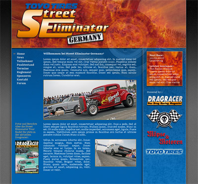 Präsentiert wird das Teil u.a. vom Dragracer- , Motoraver- und encore Magazin. Hosting/Traffic Sponsor ist Netkeepers aus Canada.