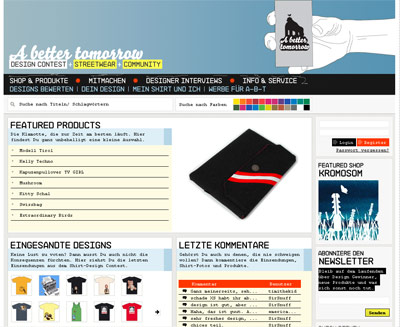 Neben dem bekannten Design Contest für Shirts, der Euch in verschiedenen Zyklen neue Shirts mit Motiven zur Befriedigung Eurer Konsumsucht verhilft, gehen wir einen Schritt weiter. Wir wollen eine Anlaufstelle für gutes tragbares Design aller Sparten schaffen.