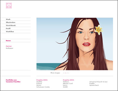 Susanne Paschke lebt in Berlin Prenzlauer Berg und arbeitet als freie Illustratorin und Screen Designerin. Das Programm ihrer Wahl ist Macromedia Freehand, mit dem sie Pfad für Pfad kleine Kunstwerke schafft.
