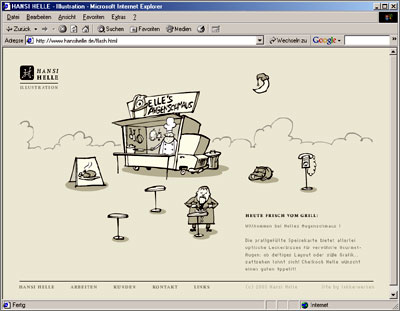 Und noch schnell ein Surftipp für die Feiertage: Eine geile Idee...so naheliegend, aber bisher hab ich´s noch nicht gesehen - ein Portfolio im Frittenbuden Comic-Look: Vom Illustrator Hansi Helle. Einfach klasse und witzig umgesetzt. :)