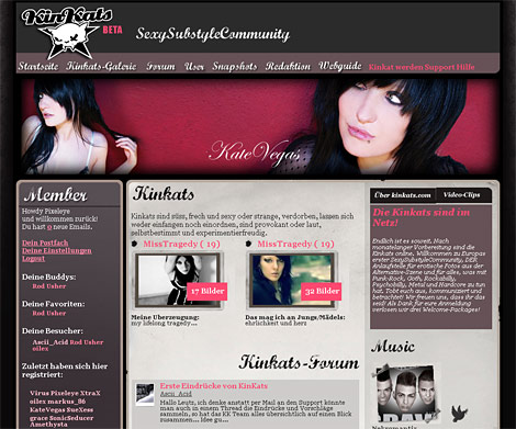 Endlich ist es soweit. Nach monatelanger Vorbereitung sind die Kinkats online. Willkommen zu Europas erster SexySubstyleCommunity, DER Anlaufstelle für erotische Fotos aus der Alternative-Szene und für alles, was mit Punk-Rock, Goth, Rockabilly, Psychobilly, Metal und Hardcore zu tun hat. Tobt euch aus, kommuniziert und betrachtet! Wir freuen uns, dass ihr das seid! Als Dank für eure Anmeldung verlosen wir drei Welcome-Packages!
