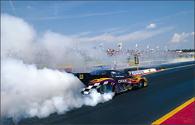 TOP FUEL - Die unangefochtene "Königsklasse" im Dragster-Sport. Hier gehen V8-Kompressor-Motoren mit Nitromethan-Einspritzung an den Start. Die Leistungen liegen dabei über 5500 PS und ermöglichen dadurch Geschwindigkeiten von über 490 Stundenkilometern.