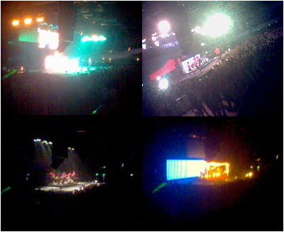 Irgendwann wurde die DJ Empore nach hinten gefahren und die Beastie boys kamen in grauen Anzügen und Begleitband auf einer Art Podium mit Lichtgirlanden herausgefahren - Loveboat-Style um Sabrosa und andere flauschige Chillout Songs zu performen. Groovomat - hammergeil, meine Oma hätte es auch geliebt :). Als Zugabe gabs Sabotage, wobei der Organist wie ein Bekloppter rumhüpfte und sein Klangorgan malträtierte. Gewidmet Gorge Bush. Zum brüllen. :)