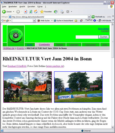 Das Sk8Mag.de zeigt in einem Bericht über die RhEINKULTUR Vert Jam in Bonn einige Skateboarding Fotos von mir.